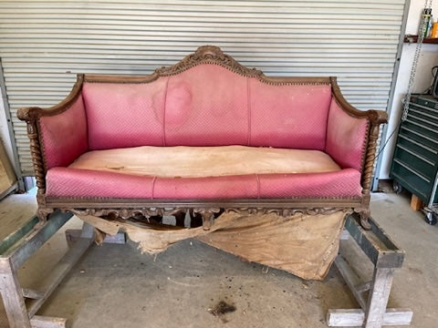 I start start each project by stripping 100% of the old upholstery, repairing and refinishing as needed, and finally, outfitting with a sturdy foundation to start the rebuild.