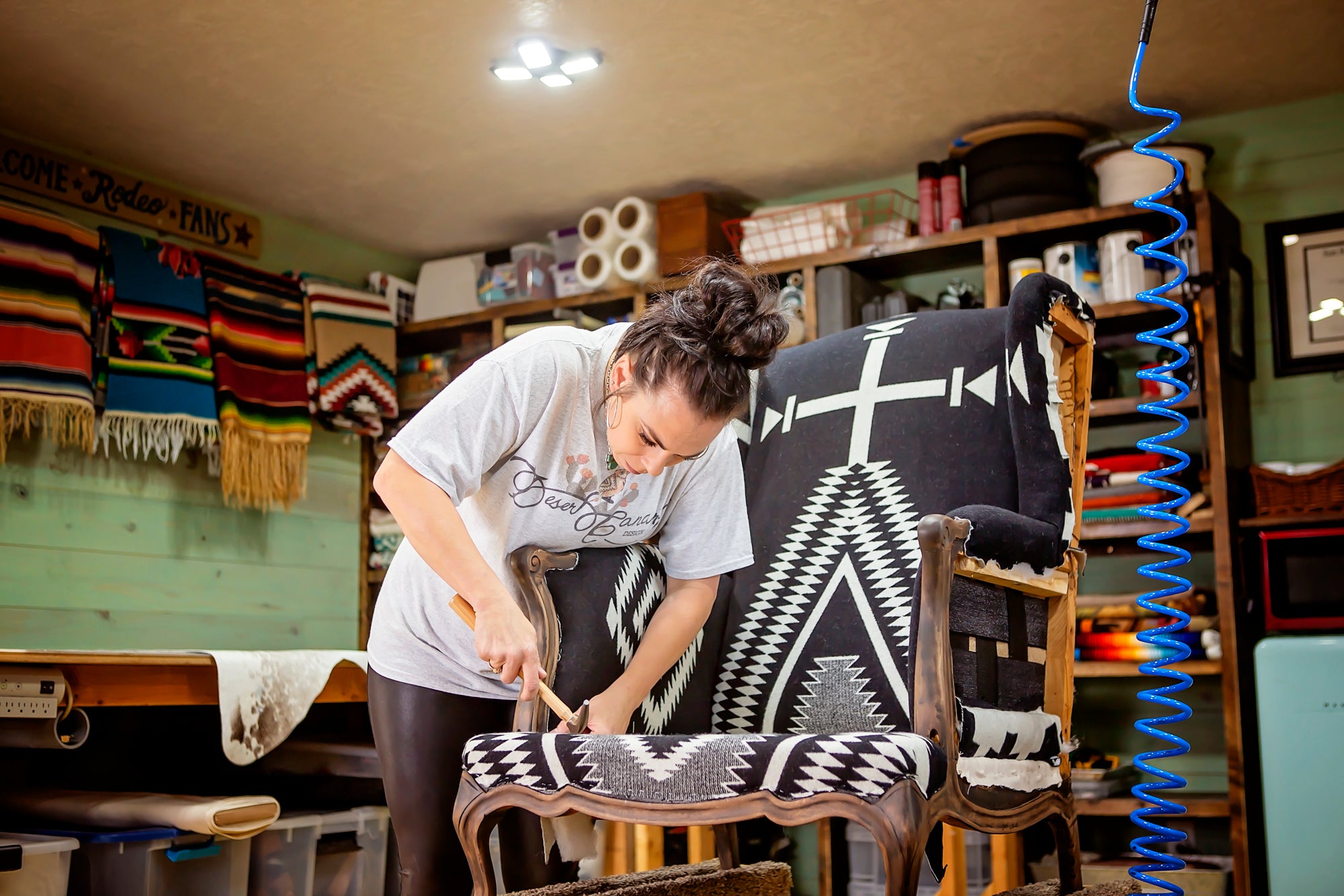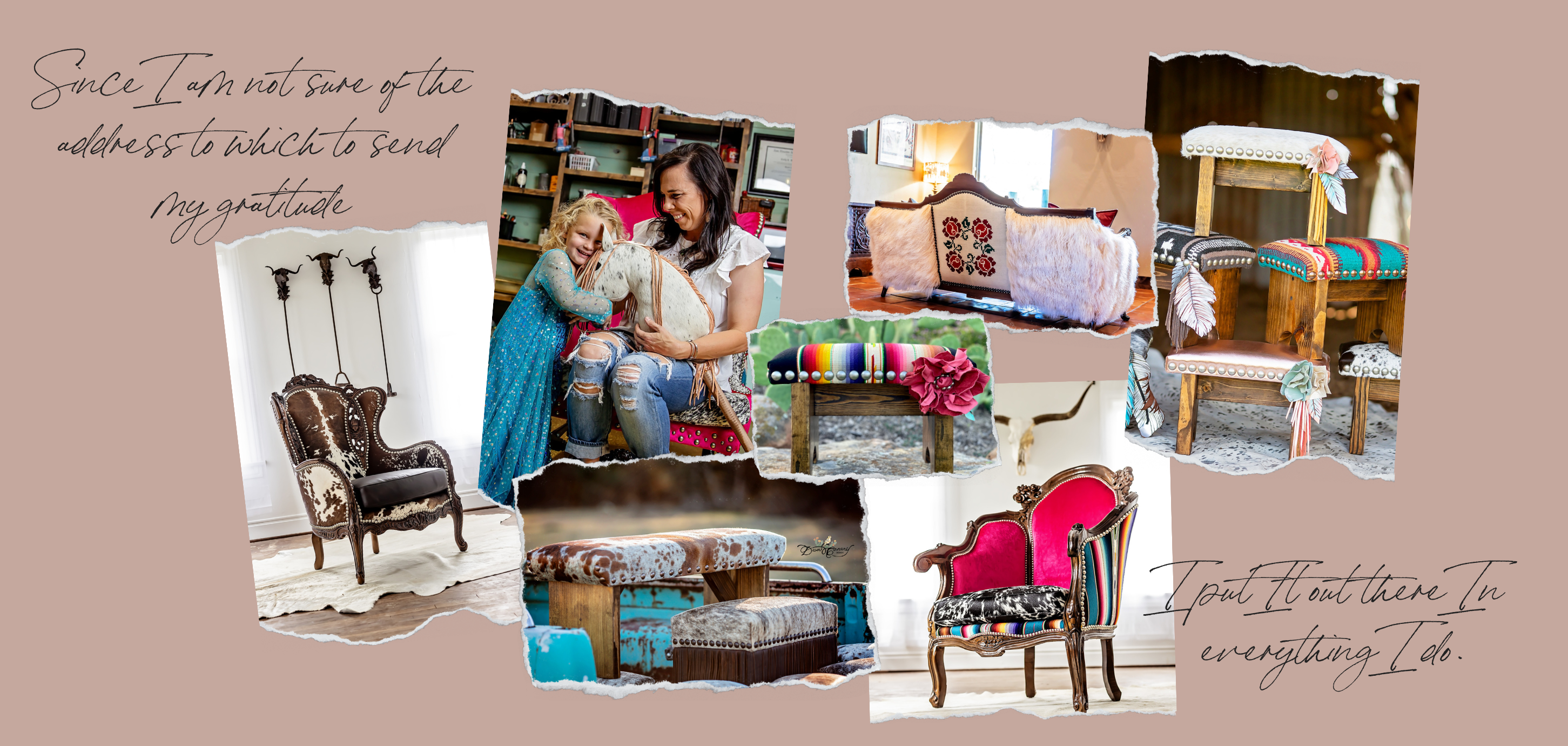 In a world where landfills are overflowing with cheap mass-produced throw-away furniture, I take pride in breathing new life back into once forgotten family heirlooms and outdated vintage furniture so they can be loved for generations to come. I specialize in reimagined upholstery using vintage handwoven textiles, natural hair-on-hides, Pendleton, and thoughtfully curating unique designs to capture the vibrant spirit of the western world in every single piece I create.