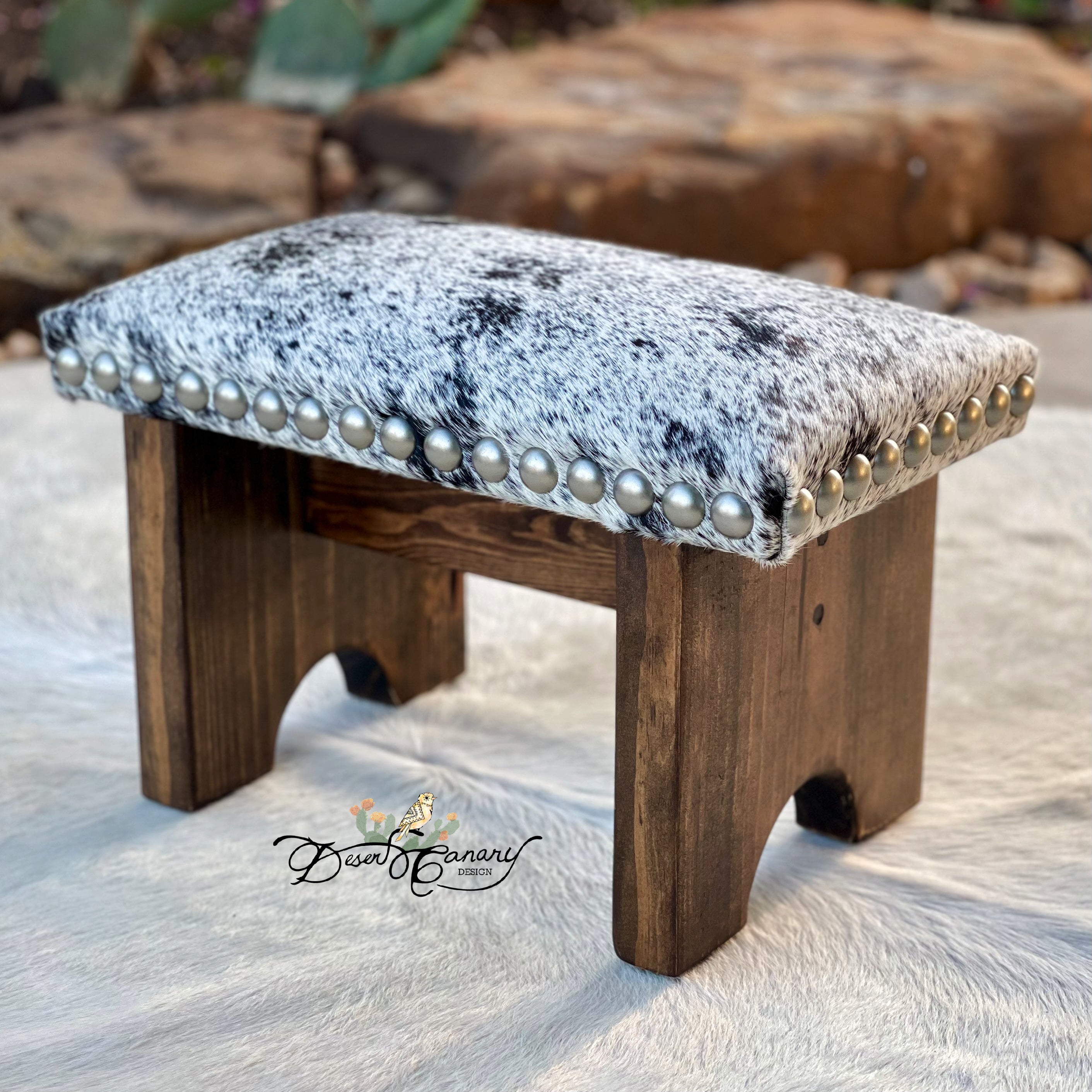 An original design from the Desert Canary Design Bench Shop, the Cowhide Step Stool is the epitome of western style and true functionality.  Born from necessity, this beautiful little workhorse of a stool will soon be one of the most used pieces of furniture in your home.