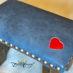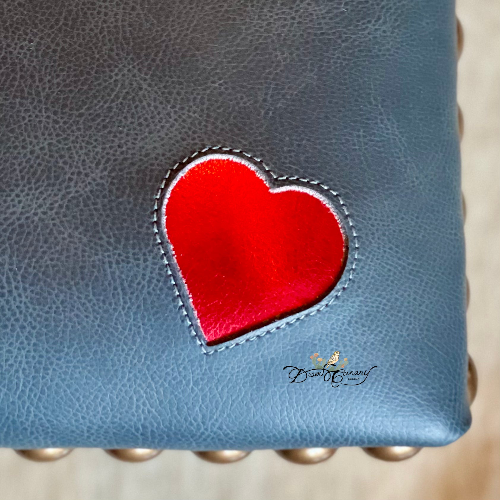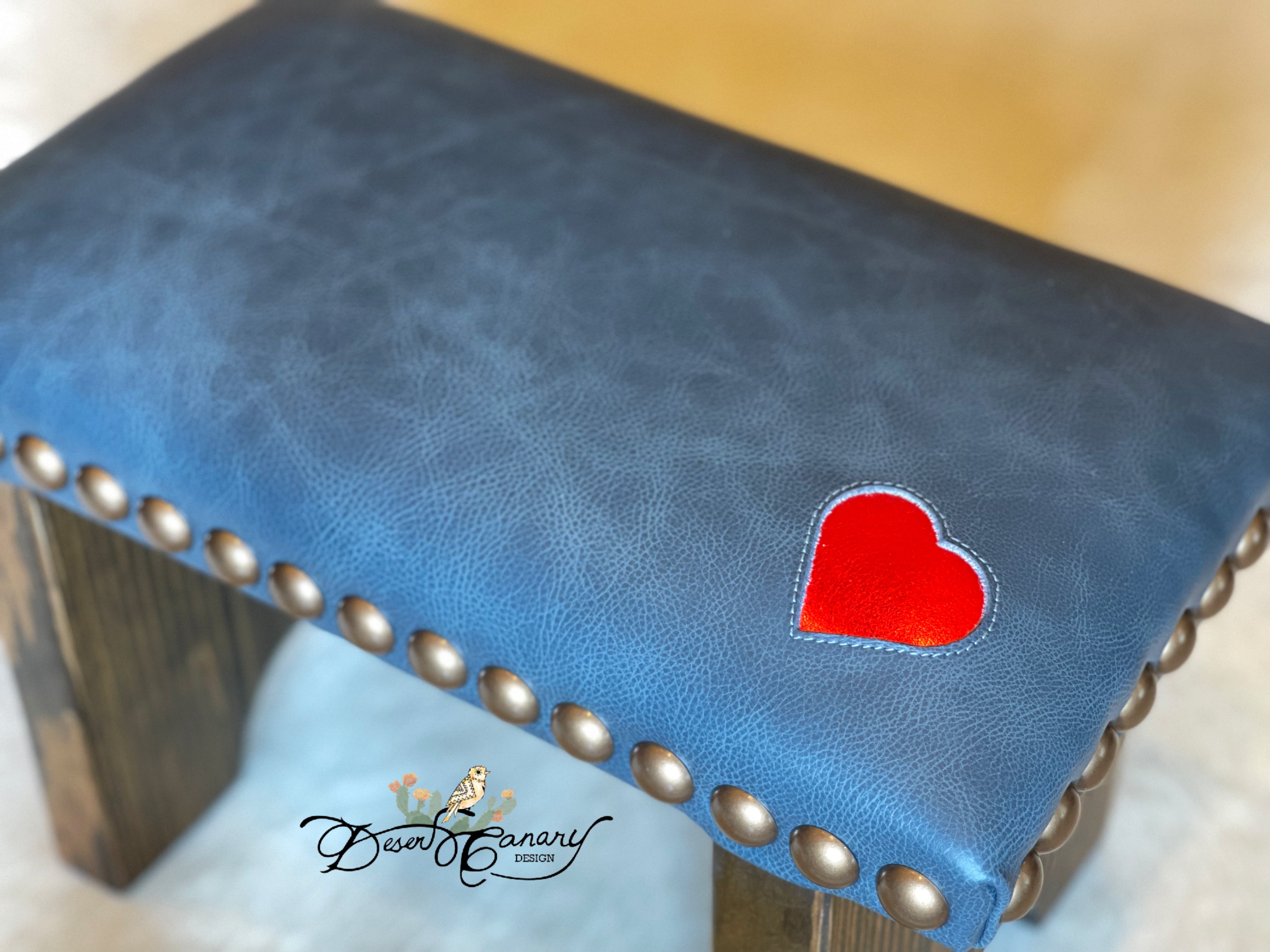 This handcrafted step stool brings rustic charm and heartfelt detail into a timeless design. Upholstered in supple leather and accented with bold nailhead trim, it features a striking red metallic leather heart inlay—making it as eye-catching as it is meaningful.