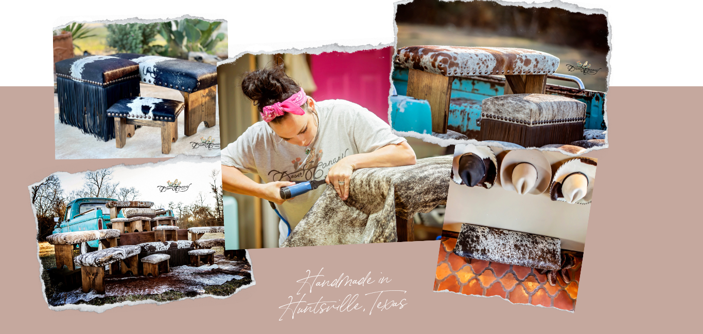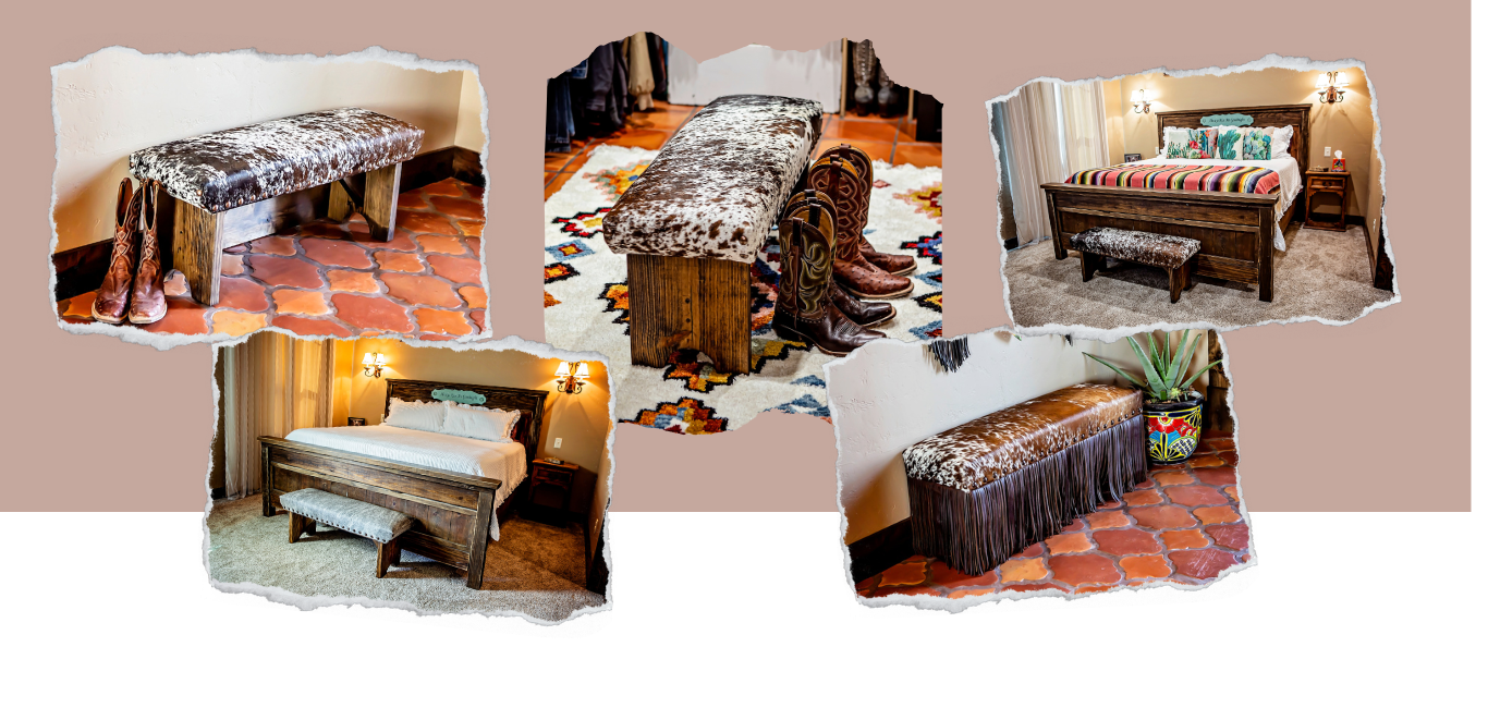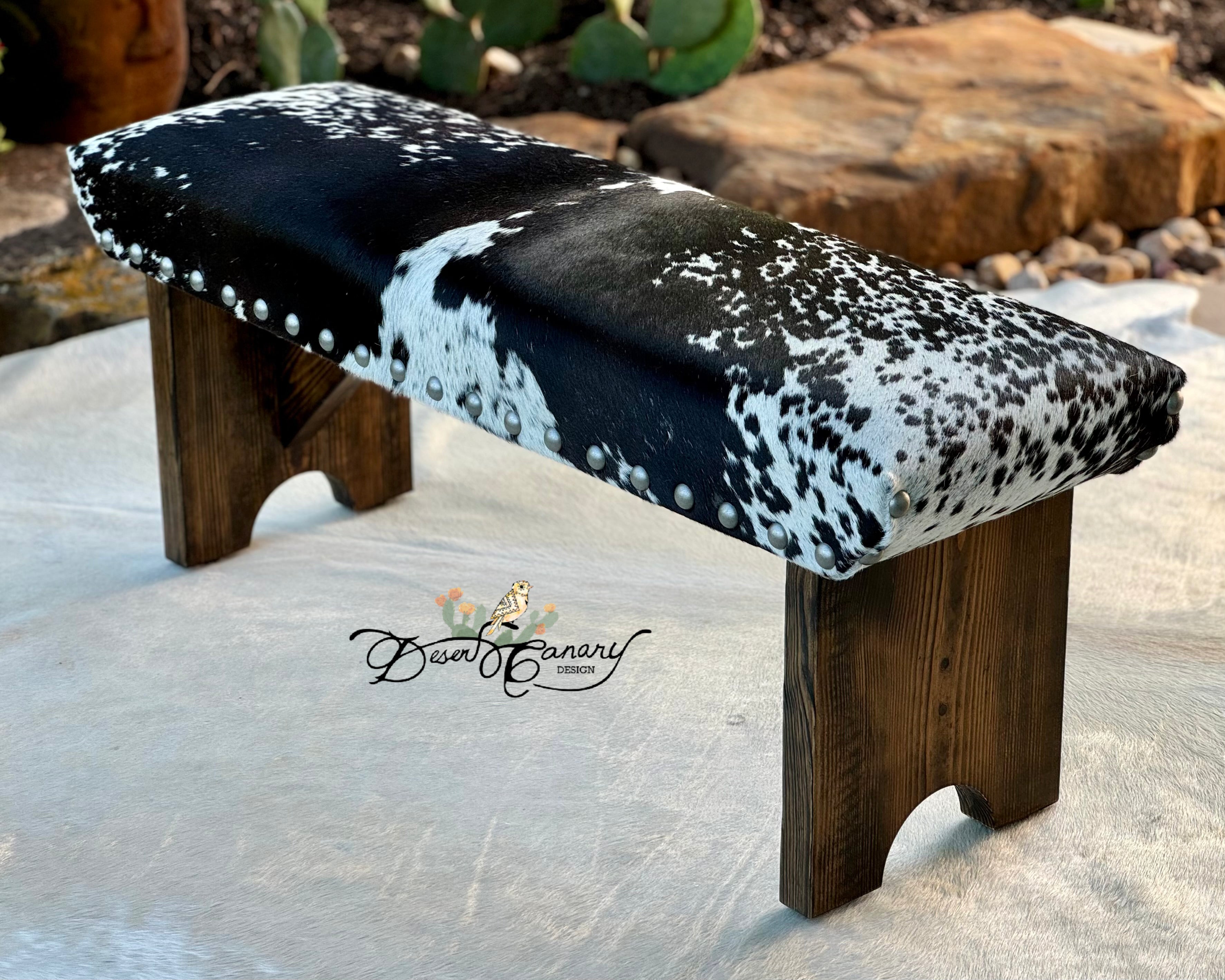 In order to best suit your individual taste, home decor, and needs, we offer a range of customization options. Work directly with designer and owner Carly Melancon to choose the perfect cowhide, smooth leather, or durable and stain resistant Pendleton to create a bench that truly reflects your style.
