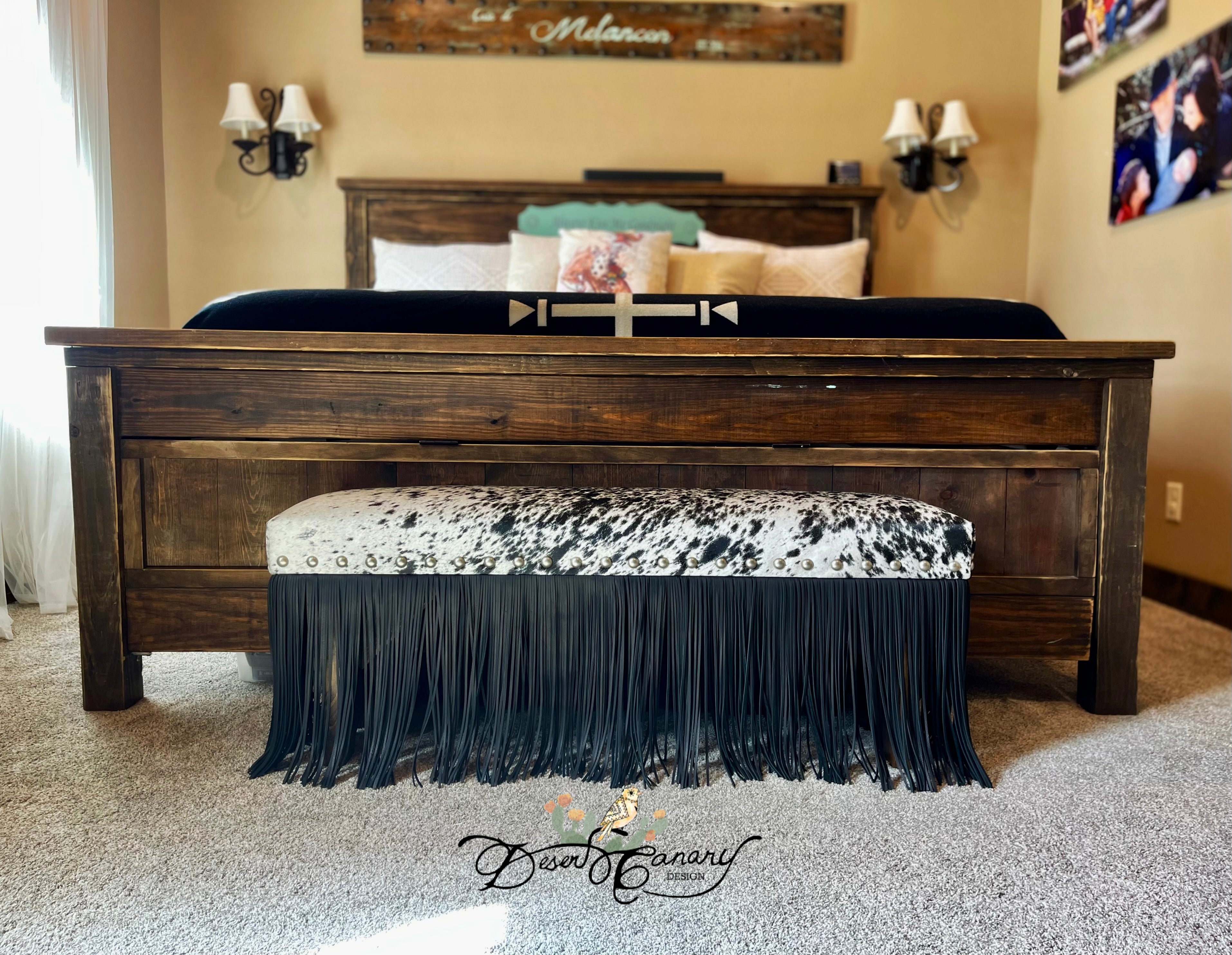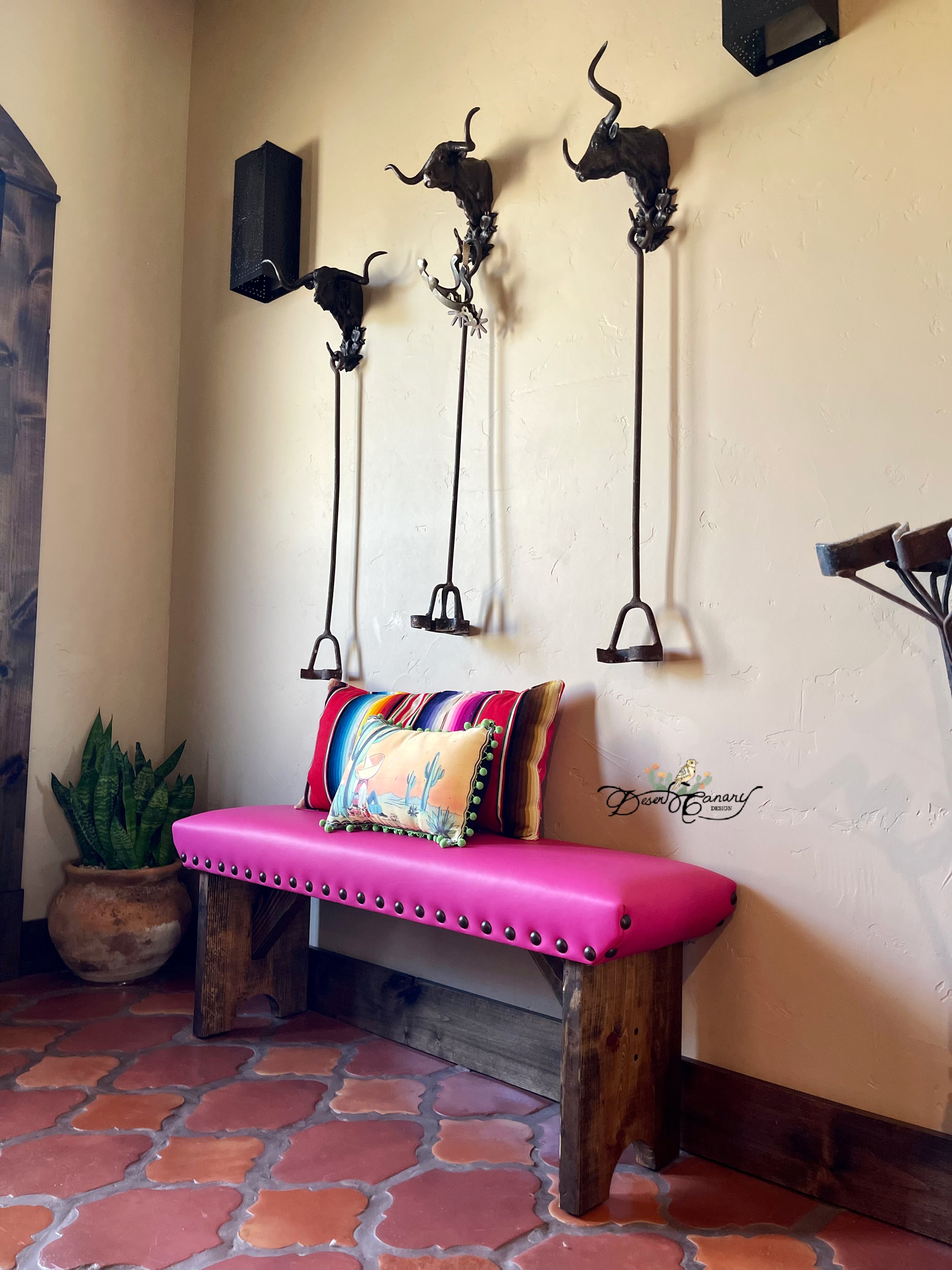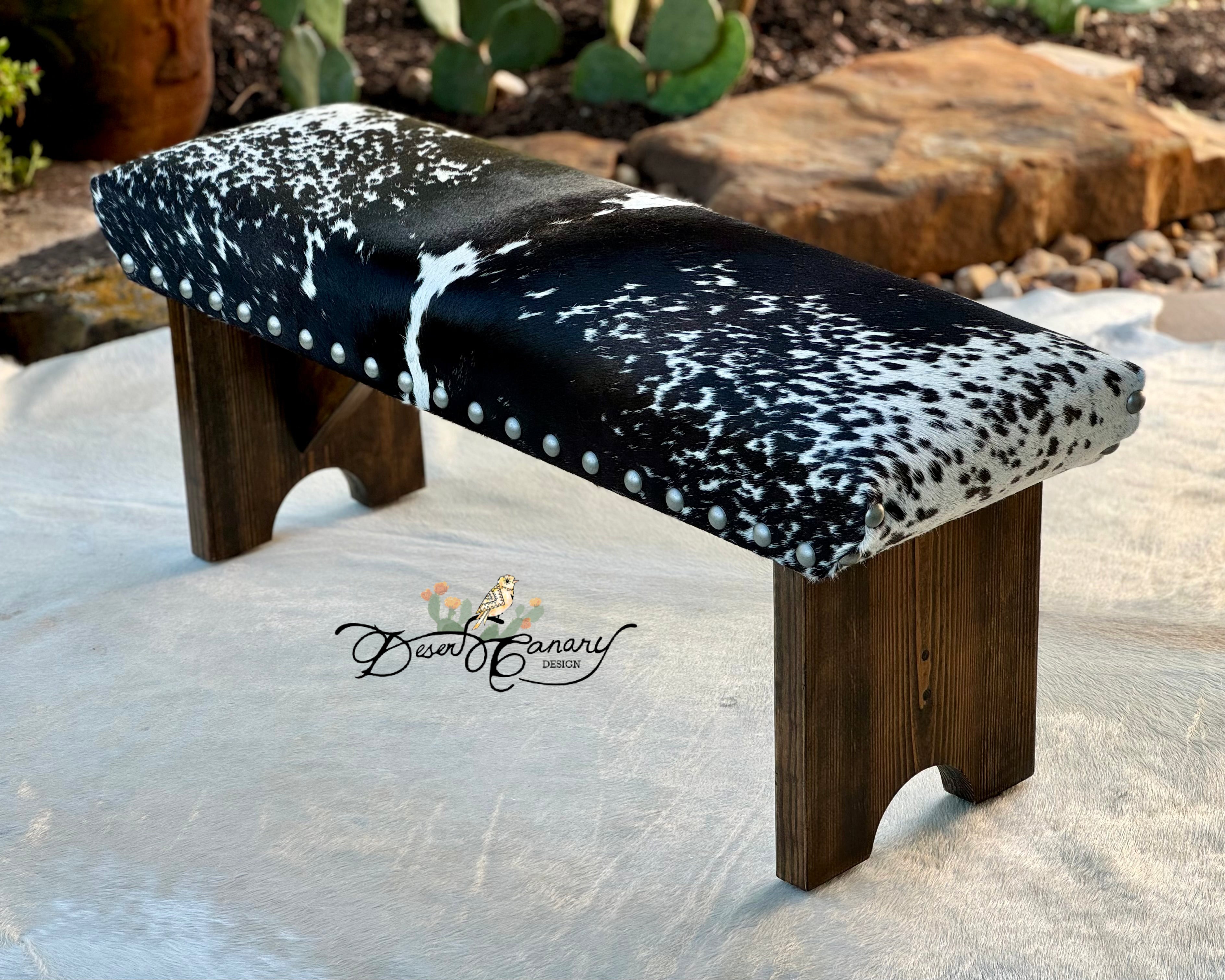 In order to best suit your individual taste, home decor, and needs, we offer a range of customization options. Work directly with designer and owner Carly Melancon to choose the perfect cowhide, smooth leather, or durable and stain resistant Pendleton to create a bench that truly reflects your style.