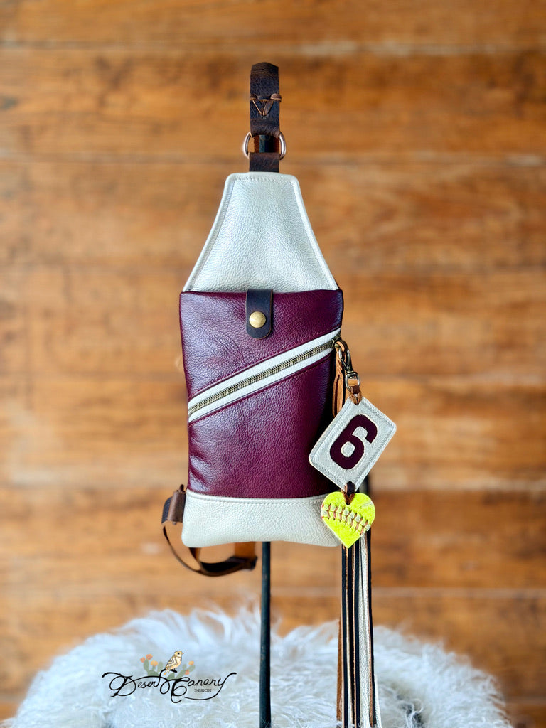 Customized in your team’s colors, it features your athlete’s number inlaid directly into the leather, not printed—giving it a rich, premium look that’s made to last season after season. Thoughtfully designed storage keeps your essentials organized and within reach. A secure zippered pocket is perfect for your phone, wallet, keys, or tickets, while the sleek silhouette keeps the bag lightweight and streamlined—never bulky. Every detail, from the sturdy hardware to the reinforced stitching, is chosen for durability and everyday convenience.
